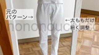 太もも外側を前後マイナス8㎜づつ、丈マイナス1cm