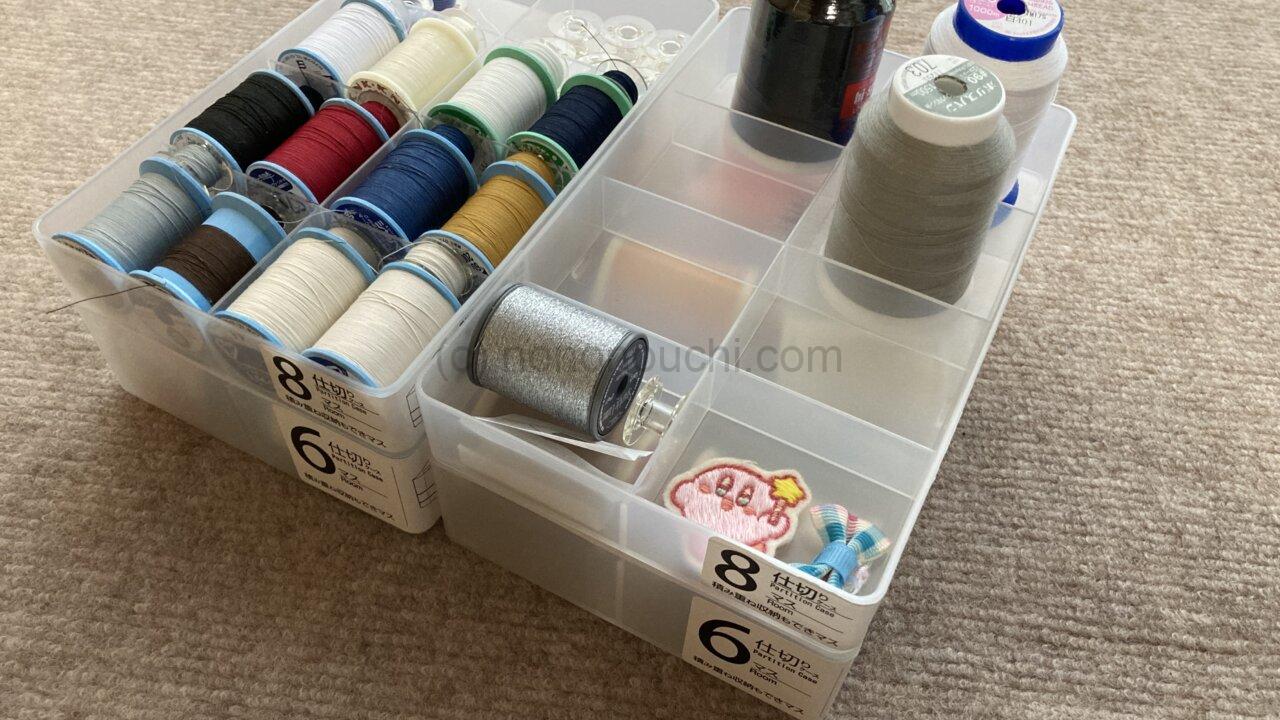 糸もボビンもまとめて収納できるけど、糸の色が見にくかったり、