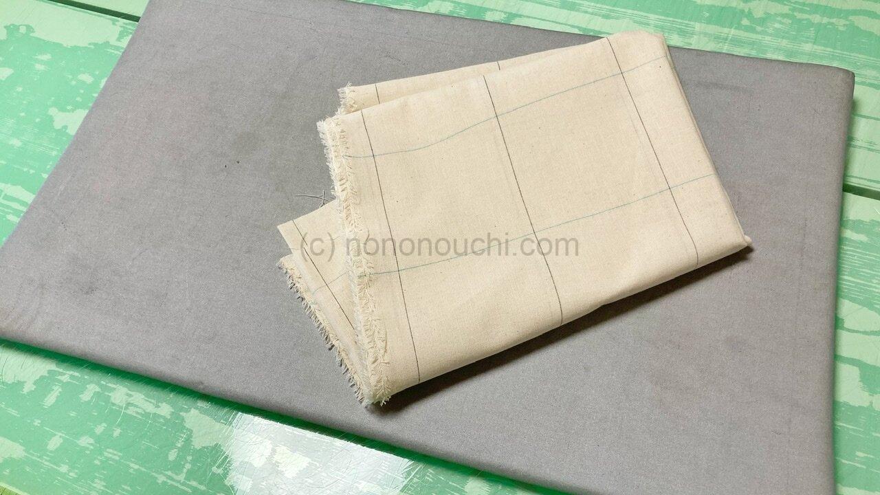 そこで、アイロン台に置くだけで直角がわかるように方眼の布を使います。
