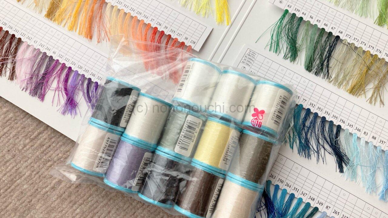 布がある程度溜まったら見本帳から糸を選んでまとめ買いしています。