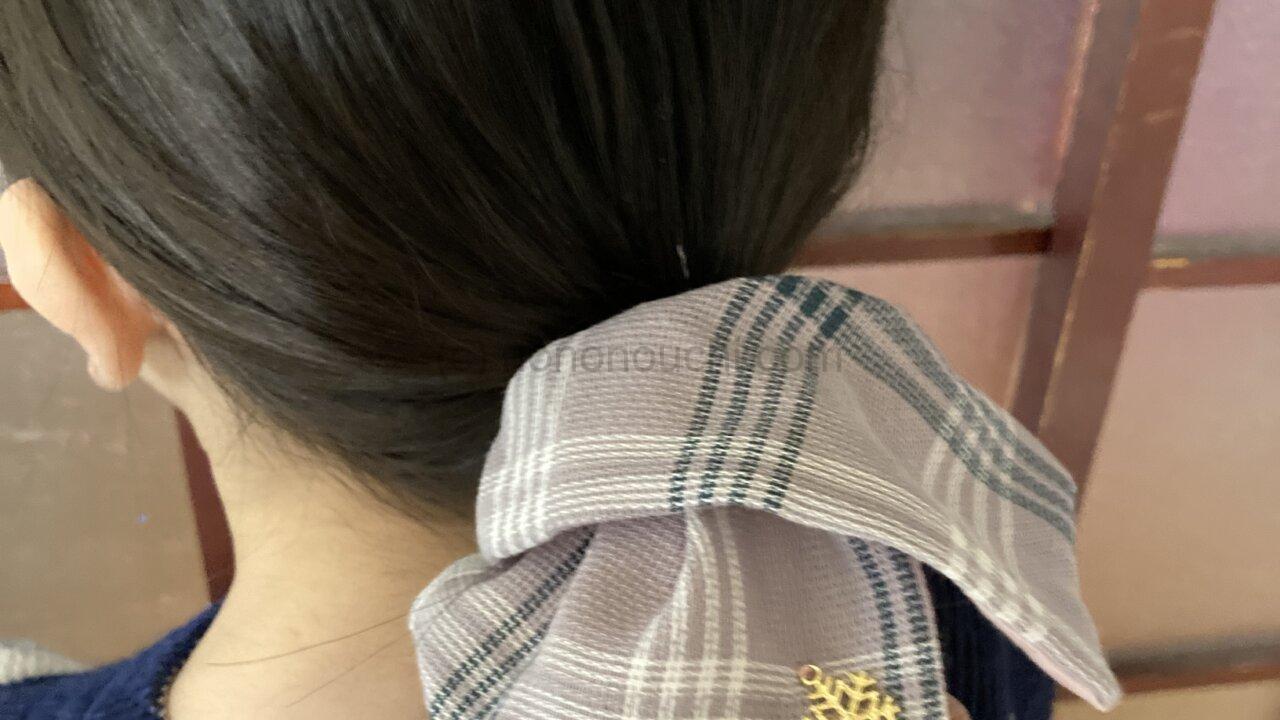 裏向きに結んで、布で髪を包む感じに降ろすと、表が可愛いく見える。