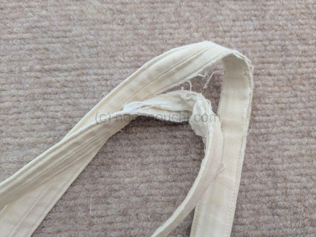 ただ、長く使っているうちに持ち手がボロボロになってきてしまいました。形はとても気に入っていたので、同じ型紙で作り直すことにします。