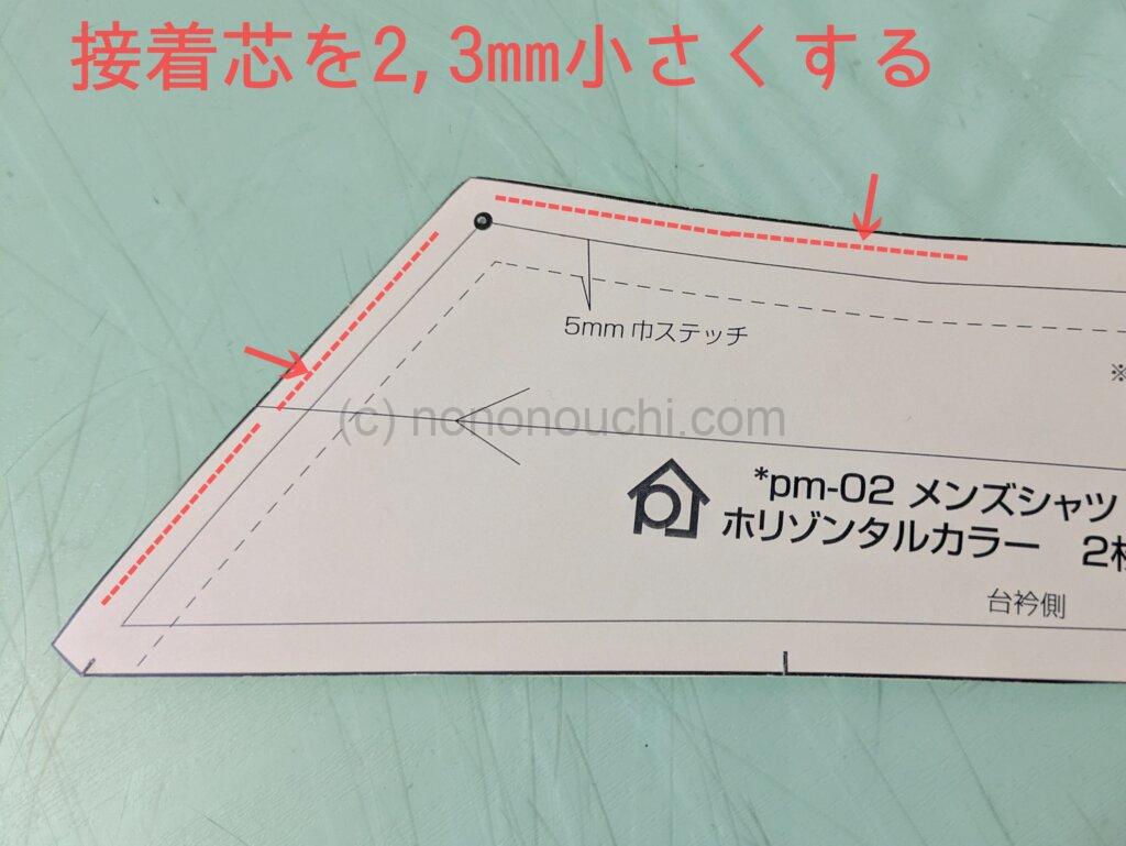 • 接着芯は縫い代まで貼らず、一回り小さくするとよい