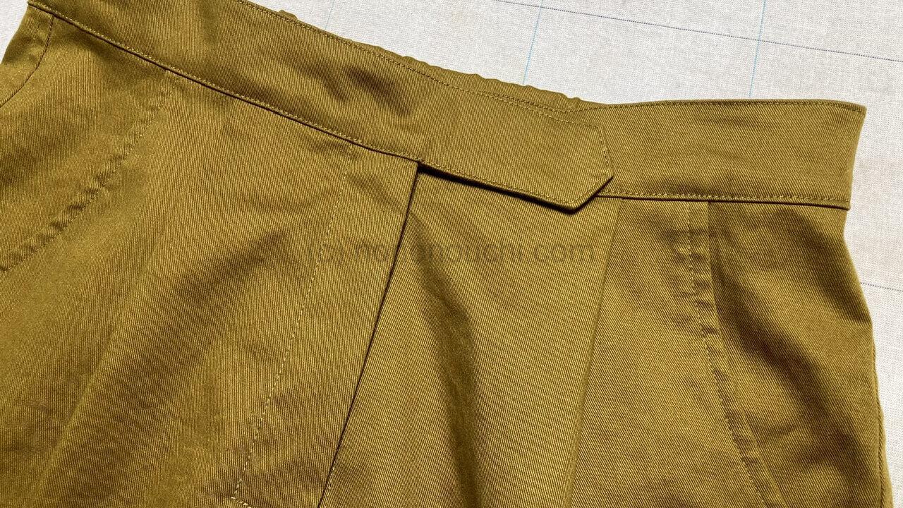ウエストは、本の仕様ではロックミシン仕上げですが、2つ折りして布端を隠しました。