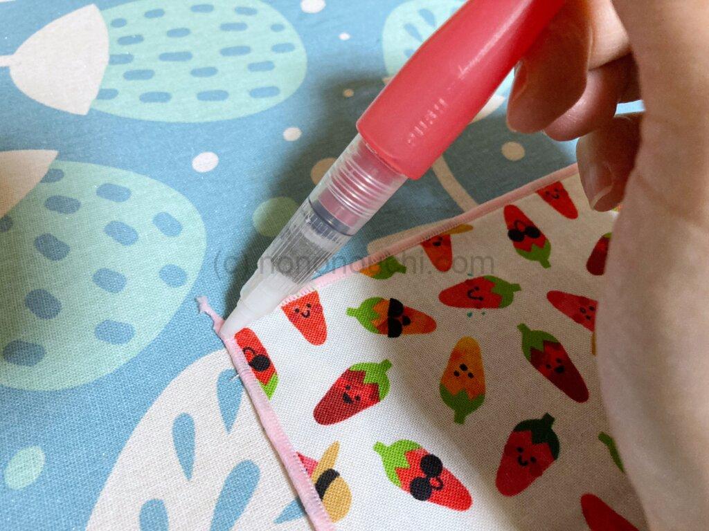 角を失敗して空環がとび出ていても、これ塗ってカットすれば平気。(売り物ではないので、ほつれなければ良しとして)