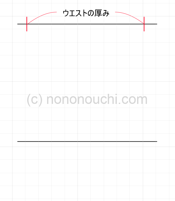 - 私は今回ウエストベルトは作らないので、ウエストのいせ分は無しにしました。
